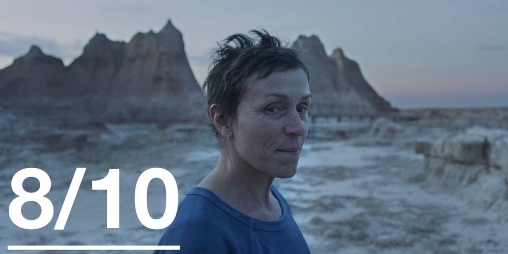 Med den som alltid lysande Frances McDormand i huvudrollen så behöver Zhao inte håller förvrida eller överdriva sin dramatik. Här finns inga utbrott eller exhibitionistiska floder av tårar. Istället så är McDormand ensam, uthållig och ständigt stark. Och trots den misär och hårda vardag som karaktärerna genomgår så lyckas Zhao ändå fånga och belysa ett förlorat USA där individualism inte innebar egoism. Hon lägger ett stort fokus på hur grupperingar och eldsjälar kan skapa en gemenskap som kanske inte resulterar i en enkel vardag, men en plats där anständighet och ömhet finns i överflöd. Detta är ett USA innan den orangea skräcken, ett land där konservativa som liberala kunde åsidosätta sin skiljaktigheter och sluta sig samman för att klara sig.