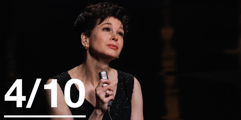 Den här förutsägbara strukturen – och naturen, blir tillslut så påfrestande att Zellwegers rollprestation blir aningen kvävd. Där hennes perfekta mimik och kroppsspråk förblir lika kraftfulla som Judy Garlands ikoniska och igenkännbara röst, så är materialet Zellweger arbetar med så blekt att ett par scener påminner om tradiga charader, med klyschig dialog och utstuderade – samt förutsägbara, metoder att manipulera publiken.